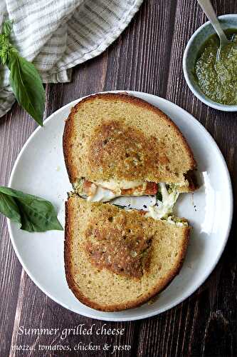 Grilled cheese ready in about 15 minutes, no oven needed, pretty good if you ask me! I put chicken, pesto, tomatoes and mozzarella inside.