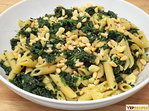 A quick and delicious vegetarian pasta dish with Gruyere cheese and toasted pine nuts.
