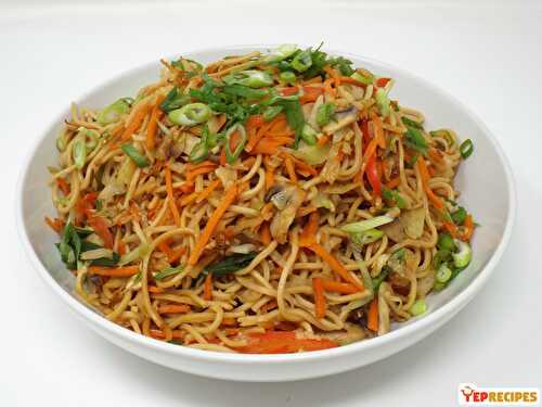 Chinese egg noodles tossed with a mix of stir-fried vegetables, ginger, garlic, sesame oil, and soy sauce.