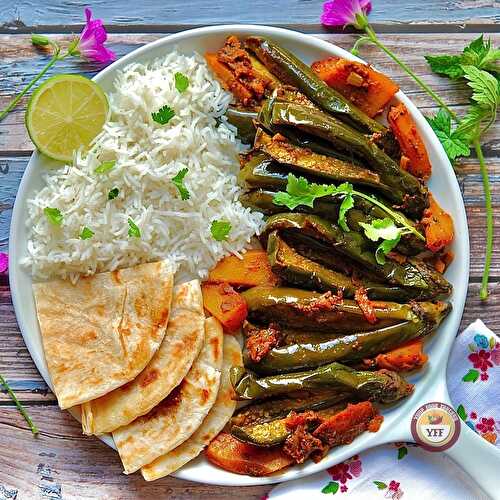 Bei diesem Brinjal Curry, sind die Auberginen nicht im Oel gebraten, sondern im Ofen geröstet.