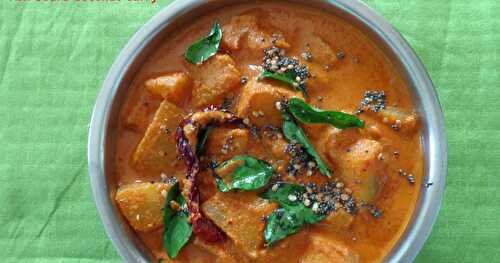 ASH GOURD COCONUT CURRY My husband used to hate some vegetables like pumpkins, ash gourd etc in his youth and childhood.