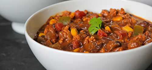 This family-size chilli sweet potato pie is similar in design to a potato or Shepard's pie but uses homemade chilli con carne and cheesy sweet potato mash topped with seasoned crushed tortilla chips.