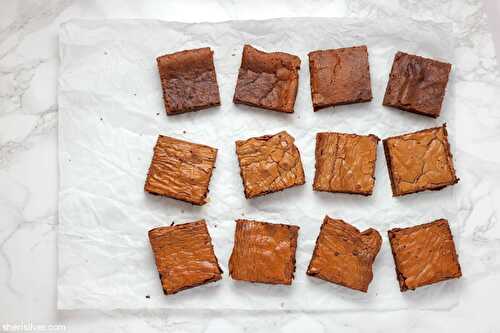 For the best fudgy Nutella brownies, my recipe has Nutella on the inside and salted caramel sauce on the crackly top.