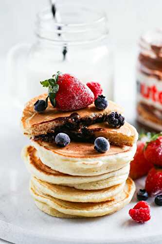 Soft and fluffy pancakes filled with Nutella are great for a weekend breakfast table.