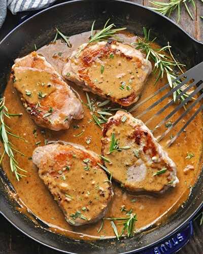 Pork comes with a homemade mustard cream sauce for an impressive dinner experience.