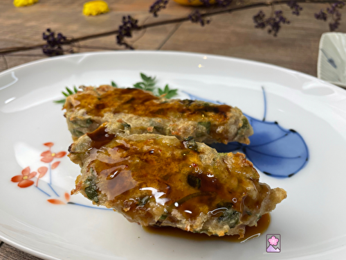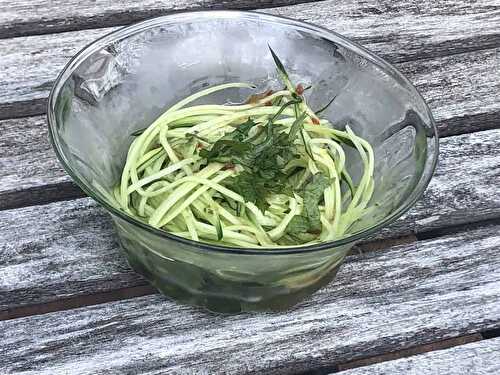 Japanese cucumber salad made with fresh cucumbers sliced julienne style, mixed with ‘wafu’ dressing and topped with fresh shiso leaves.
