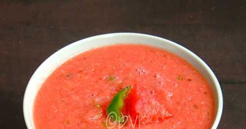 Gazpacho is a cold soup made of raw vegetables and is served cold.