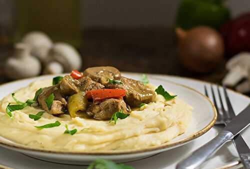 A Greek recipe for a delicious (and gluten free) dinner! Pieces of pork, mushrooms and peppers are slow cooked in a rich wine sauce for the ultimate pleasure!