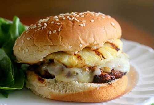 These Hawaiian-style Teriyaki Burgers with Grilled Pineapple deliver a spicy kick! Juicy beef patties are drenched in a sweet and spicy teriyaki sauce, then topped with grilled pineapple and zesty red onion.