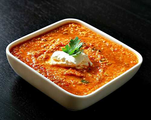 A refreshing (and gluten-free) watermelon and tomato soup that’s best eaten cold.