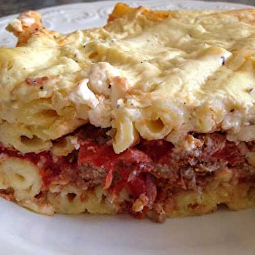 Pastitsio is a popular baked pasta dish in Greece, usually created with mince meat and bechamel sauce.