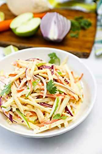 Let me tell you, there is nothing that can be compared to the delicious, simple, tasty, rich, crunchy, and vegan Jicama slaw we have today for you!