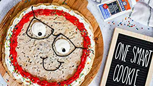 This "Smart Cookie" recipe puts a creative twist on the classic cookie cake, using store-bought cookie dough to keep things simple.