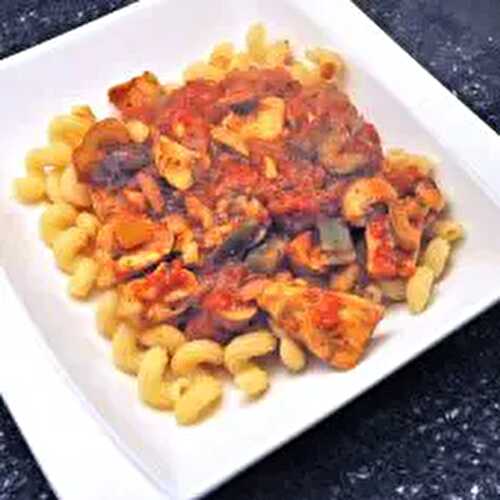 Pan-seared chicken breasts in a creamy tarragon sauce made with white wine, Dijon mustard, and Parmesan.