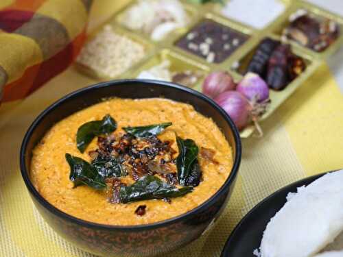 A tangy, spicy South Indian chutney made with gongura leaves, tamarind, and fiery red chilies - perfect for adding zing to dosas, idlis and rice dishes.