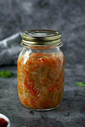 This vibrant carrot pickle packs a punch with its perfect blend of Indian spices and tangy flavors.