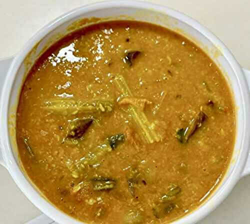 Indulge in the tantalizing flavours of Drumstick Kara Kuzhambu, a South Indian delicacy bursting with tangy and spicy notes, featuring tender drumstick pods in a rich tamarind-based gravy.