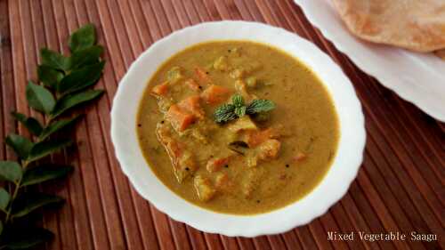 Mixed Vegetable Saagu - Is a spicy vegetable side dish with a mild sweet tone of cashews and fennel seeds is a speciality from Karnataka.