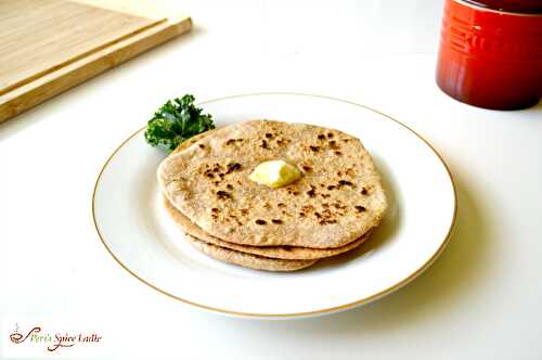 An Indian flat-bread made with whole wheat flour dough and a lightly spiced stuffing mix of healthy kale, cauliflower and aromatic roasted crushed fennel seeds.