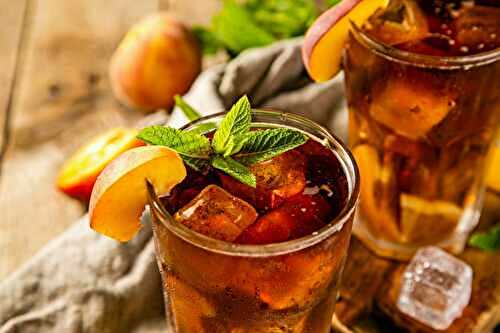 Beat the heat on summer days with a refreshing glass of peach iced tea, perfect for the whole family.