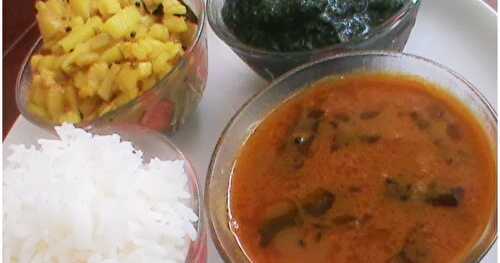 A delicious, tangy and flavorful South Indian curry made with fenugreek leaves, potatoes, brinjals, and a creamy coconut and poppy seed paste.