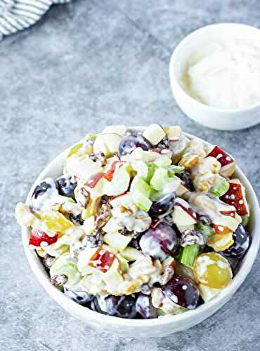This Vegan Waldorf Salad is bursting with fresh flavors of apple, celery, grape, walnut and raisins in a creamy mayonnaise dressing, the perfect salad for summer cookouts or the holiday menu.