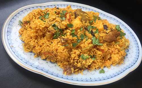 Memoni Akni is a biryani type rice dish made with mutton, potatoes, and lots of aromatic spices that make it too difficult to resist.