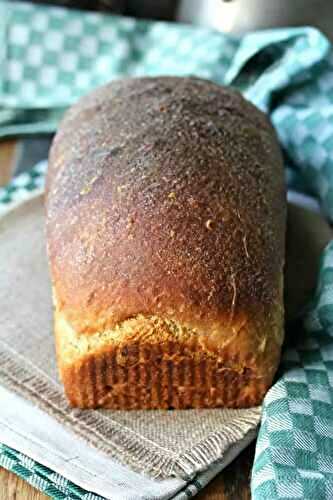 A homemade no-knead sandwich bread made with quinoa, oats, cornmeal, whole wheat flour, and bread flour.