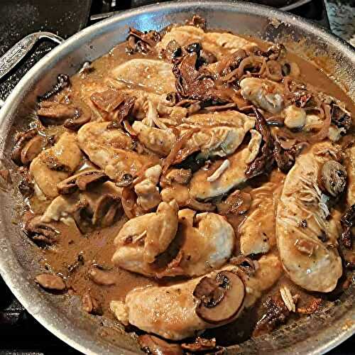 White button mushrooms sauteed with fresh garlic in olive oil and butter with a bit of soy sauce.
