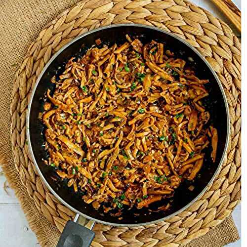 This vegan barbacoa is so flavorful and delicious that you will not be able to tell the difference from the real thing! In this easy Copycat Chipotle recipe, king oyster mushrooms are shredded and tossed in a flavorful sauce to create a juicy and tender.