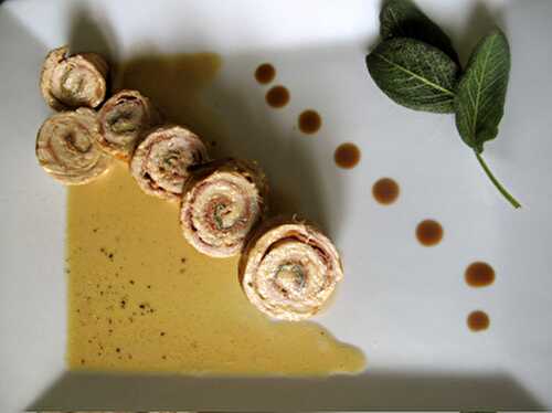 Quick, easy recipe for Veal or Chicken saltimbocca, the Italian classic, served as spirals with Parma ham or sun-dried tomatoes.