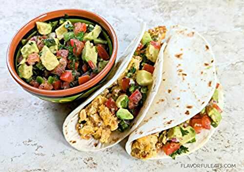 Chorizo Breakfast Tacos are made with the delicious combination of fluffy scrambled eggs, Mexican chorizo, and diced poblano pepper.