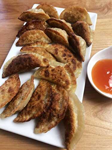 Easy to make, and delicious to eat, these little chicken potstickers gyoza with green onion, cabbage and Chinese seasonings are perfect.