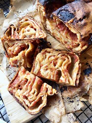 Based on a classic recipe from SaveurA gooey-cheese-filled lasagna-like loaf encased in a not-quite-burnt blistery crust.