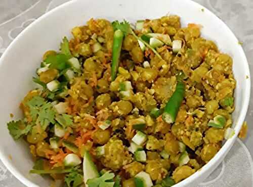 This delicious South Indian beach snack combines tender white peas with fresh coconut and tangy raw mango.