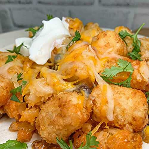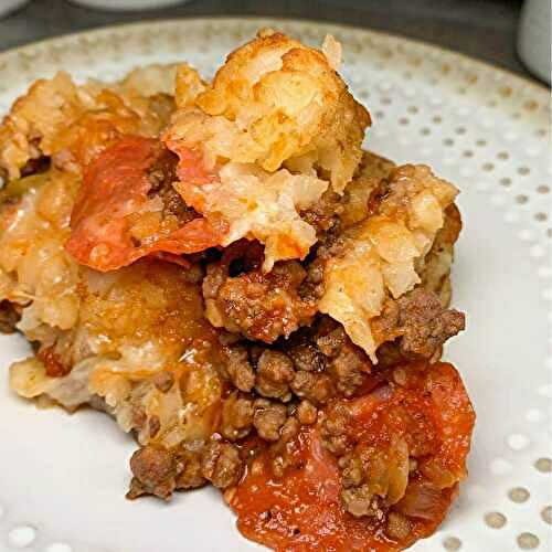 A cheesy meat mixture with a hint of spice, topped with crispy tater tots and more cheese!
