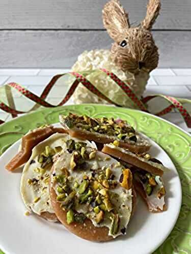 Delicious, crunchy toffee topped with melted white chocolate and topped with toasted pistachios for a fun Easter candy treat, or anytime of the year! It’s so delicious!