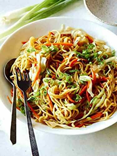 A quick and tasty Asian-inspired dish that combines tender noodles with crisp vegetables and a flavorful sauce.