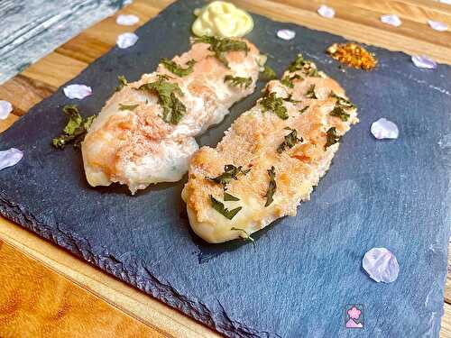 This yakitori inspired dish is made with tender chicken breast topped with spicy cod roe that’s first baked and then broiled to perfection.